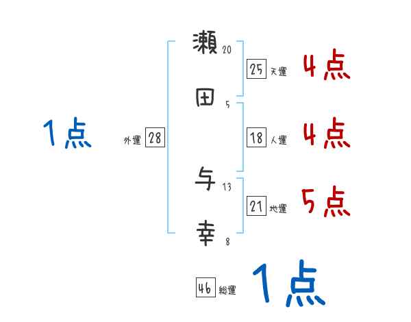 天運![]() | 瀬田与幸さんの天運は25画の4つ星!個性があり才能があふれる。強運の持ち主で発展する。 家系が持つ宿命的な運勢を表します。祖先から受け継いだ苗字ですので自分の力が及びません。家柄を象徴します。 |
