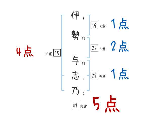伊勢与志乃さんの画数の鑑定結果