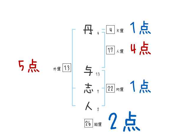 丹与志人さんの画数の鑑定結果