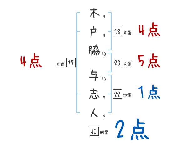 木戸脇与志人さんの画数の鑑定結果