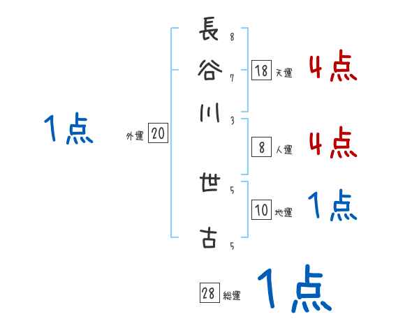 総運![]() | 長谷川世古さんの総運は28画の1つ星!家庭環境に注意。スポーツで活躍できる能力があるかも。 あなたの人生を表す1番重要な運勢です。生涯を通じて影響する総合運となり、主に50歳以降の晩年期に影響を及ぼします。 |