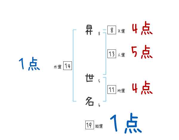 昇世名さんの画数の鑑定結果