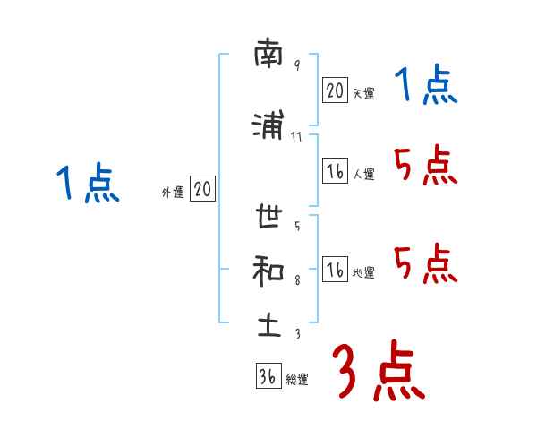 総運![]() | 南浦世和土さんの総運は36画の3つ星!先見性が豊かです。多少神経質で苦労することも。 あなたの人生を表す1番重要な運勢です。生涯を通じて影響する総合運となり、主に50歳以降の晩年期に影響を及ぼします。 |