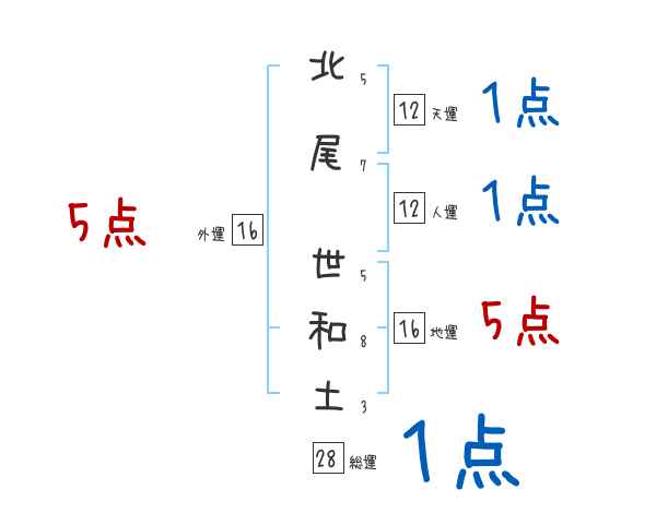 北尾世和土さんの画数の鑑定結果