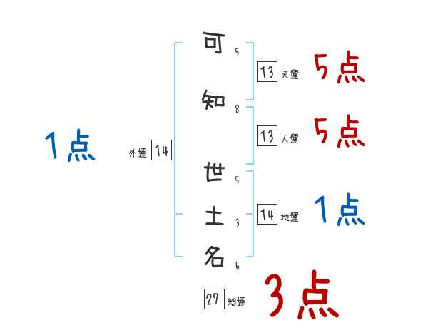 天運![]() | 可知世土名さんの天運は13画の5つ星!才能に恵まれ人気がある。名声を手に入れる。円満な人生。 家系が持つ宿命的な運勢を表します。祖先から受け継いだ苗字ですので自分の力が及びません。家柄を象徴します。 |