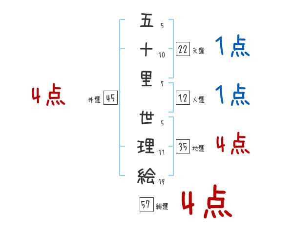 天運![]() | 五十里世理絵さんの天運は22画の1つ星!努力することが苦手ないっぽう手先が器用。芸術性にも優れる。 家系が持つ宿命的な運勢を表します。祖先から受け継いだ苗字ですので自分の力が及びません。家柄を象徴します。 |