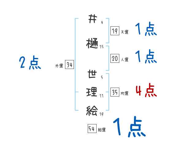 外運![]() | 井樋世理絵さんの外運は34画の2つ星!独創性に優れるが、自尊心が強く災難に注意しましょう。 生活面を象徴する運勢です。外部から受ける影響力を表し、結婚運、家庭運や職場、環境への順応性を表します。 |