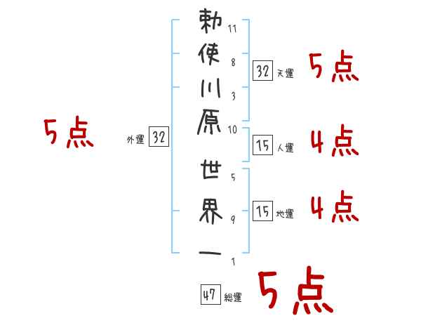 勅使川原世界一さんの画数の鑑定結果