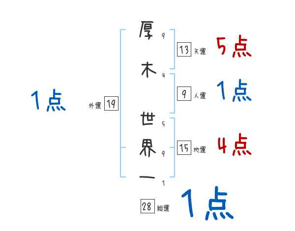厚木世界一さんの画数の鑑定結果