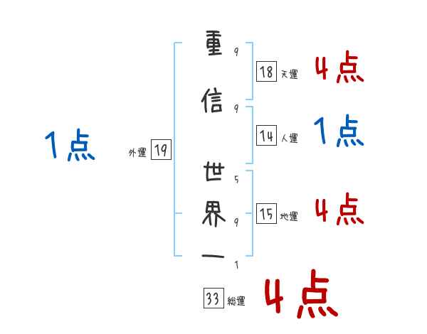 重信世界一さんの画数の鑑定結果