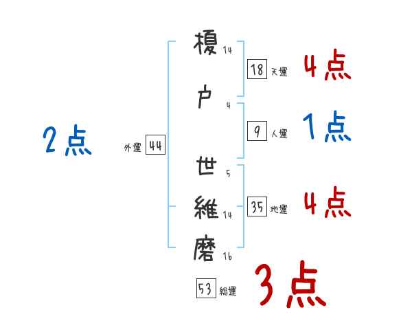 家系が持つ宿命的な運勢を表します。祖先から受け継いだ苗字ですので自分の力が及びません。家柄を象徴します。