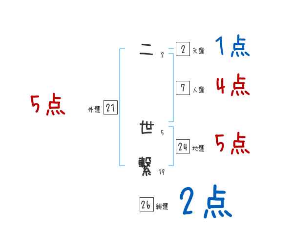 二世繋さんの画数の鑑定結果