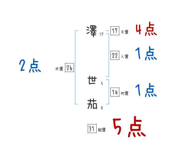 澤世茄さんの画数の鑑定結果