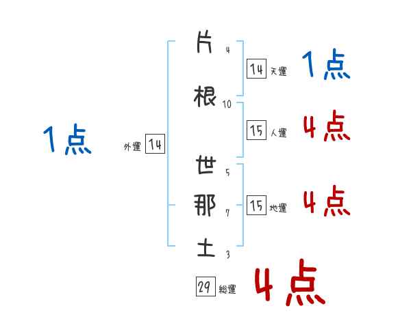 片根世那土さんの画数の鑑定結果