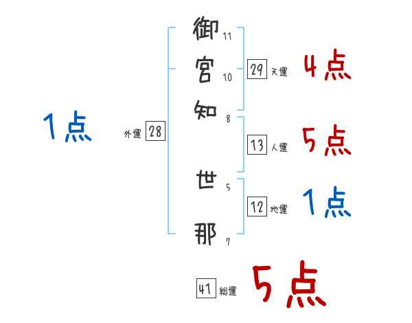 天運![]() | 御宮知世那さんの天運は29画の4つ星!完全主義で才能がある。厳格な心の持ち主。 家系が持つ宿命的な運勢を表します。祖先から受け継いだ苗字ですので自分の力が及びません。家柄を象徴します。 |