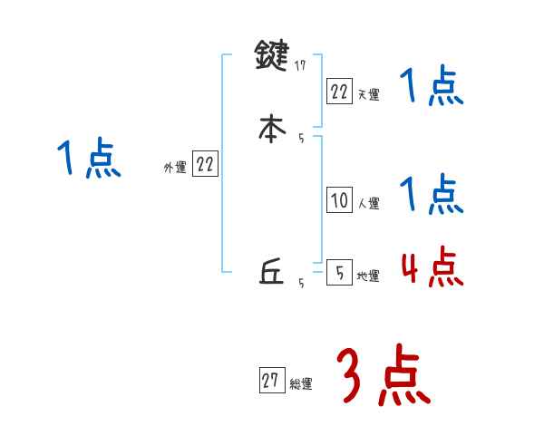 鍵本丘さんの画数の鑑定結果