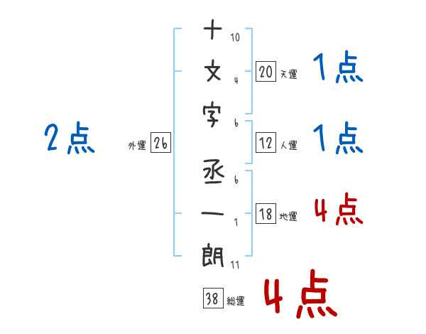 外運![]() | 十文字丞一朗さんの外運は26画の2つ星!波瀾万丈かも。信頼できる人を大事にしましょう。 生活面を象徴する運勢です。外部から受ける影響力を表し、結婚運、家庭運や職場、環境への順応性を表します。 |