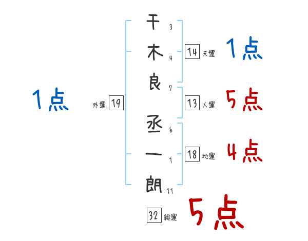 千木良丞一朗さんの画数の鑑定結果