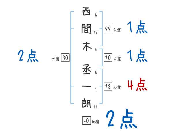 総運![]() | 西間木丞一朗さんの総運は40画の2つ星!自信過剰で物事に固執するためトラブルに注意。 あなたの人生を表す1番重要な運勢です。生涯を通じて影響する総合運となり、主に50歳以降の晩年期に影響を及ぼします。 |