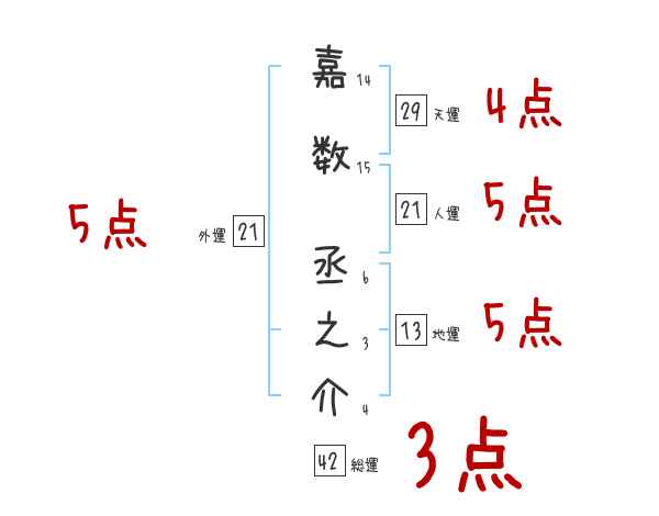 嘉数丞之介さんの画数の鑑定結果