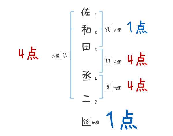 佐和田丞二さんの画数の鑑定結果
