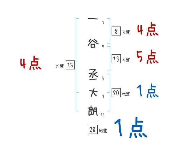 天運![]() | 一谷丞大朗さんの天運は8画の4つ星!勤勉家。根気強く努力し成功する。忍耐力がある。 家系が持つ宿命的な運勢を表します。祖先から受け継いだ苗字ですので自分の力が及びません。家柄を象徴します。 |