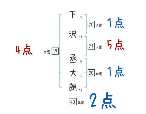 外運![]() | 下沢丞大朗さんの外運は17画の4つ星!積極的な行動力。地位を気づき財産を手に入れる。純粋な心と直感力。 生活面を象徴する運勢です。外部から受ける影響力を表し、結婚運、家庭運や職場、環境への順応性を表します。 |