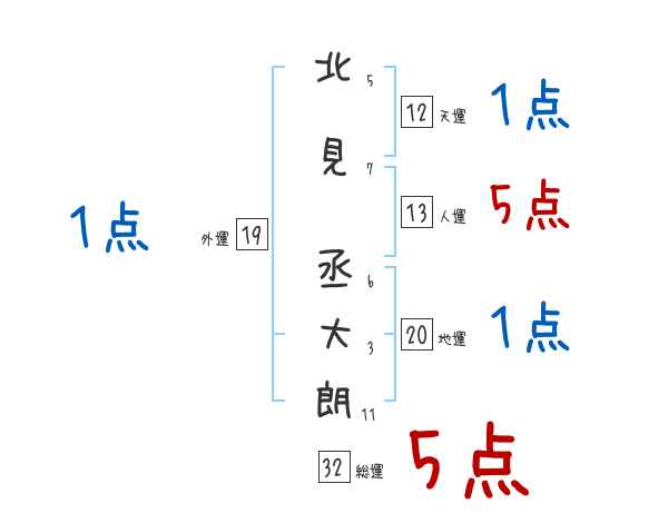 北見丞大朗さんの画数の鑑定結果