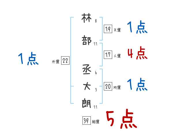林部丞大朗さんの画数の鑑定結果