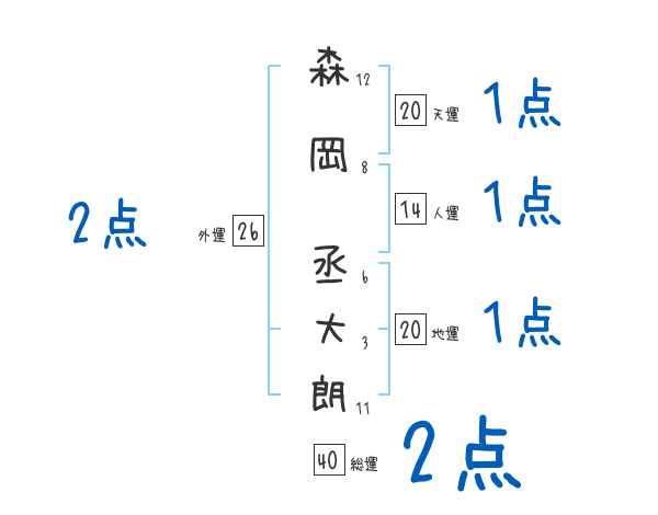 外運![]() | 森岡丞大朗さんの外運は26画の2つ星!波瀾万丈かも。信頼できる人を大事にしましょう。 生活面を象徴する運勢です。外部から受ける影響力を表し、結婚運、家庭運や職場、環境への順応性を表します。 |