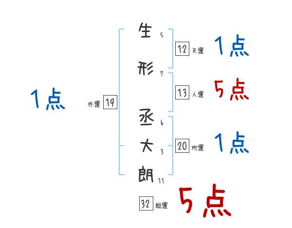 総運![]() | 生形丞大朗さんの総運は32画の5つ星!柔軟性があり成功する。チャンスが多く金運が良い。 あなたの人生を表す1番重要な運勢です。生涯を通じて影響する総合運となり、主に50歳以降の晩年期に影響を及ぼします。 |