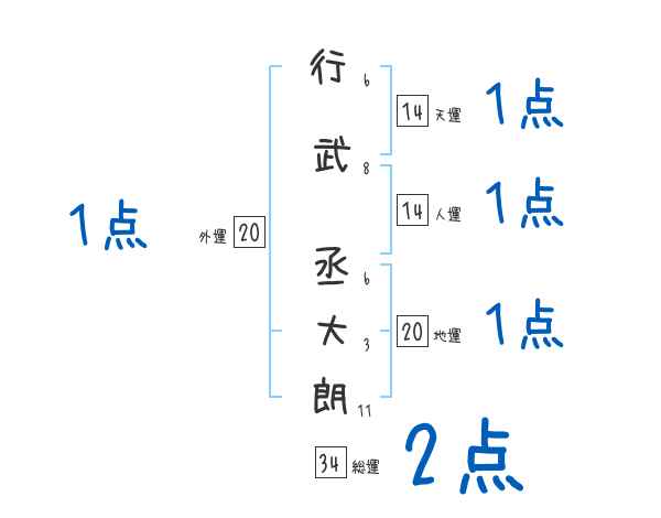 行武丞大朗さんの画数の鑑定結果