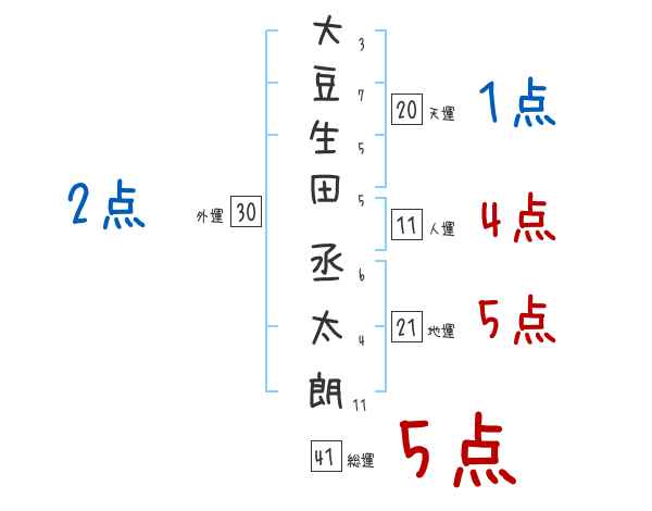 大豆生田丞太朗さんの画数の鑑定結果