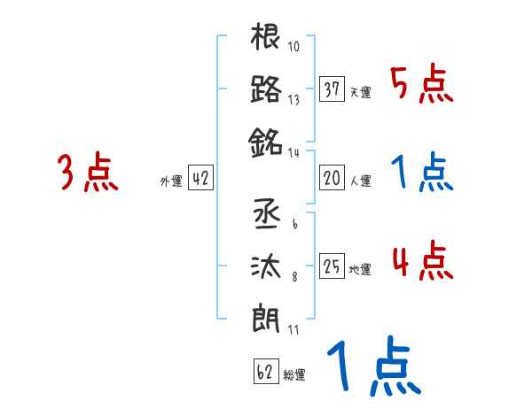 根路銘丞汰朗さんの画数の鑑定結果