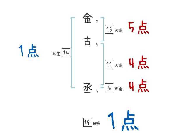 金古丞さんの画数の鑑定結果