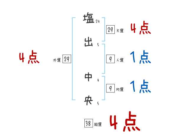 塩出中央さんの画数の鑑定結果