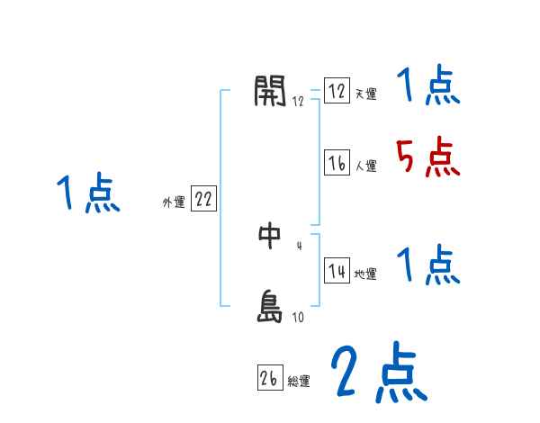 開中島さんの総運は26画の2つ星