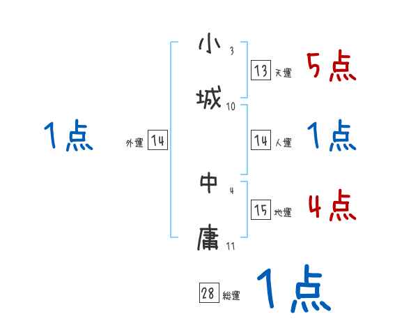 小城中庸さんの画数の鑑定結果
