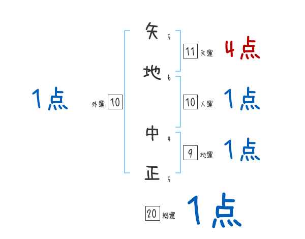 矢地中正さんの画数の鑑定結果