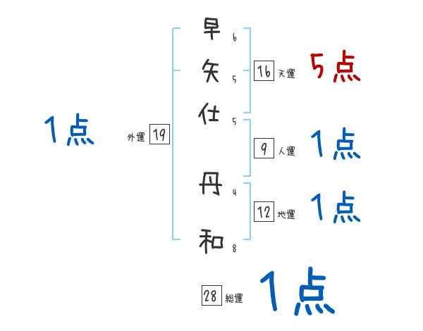 早矢仕丹和さんの画数の鑑定結果