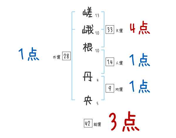 嵯峨根丹央さんの画数の鑑定結果