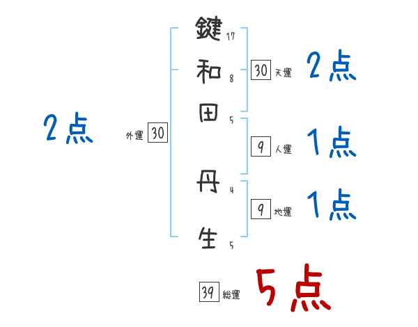 鍵和田丹生さんの画数の鑑定結果