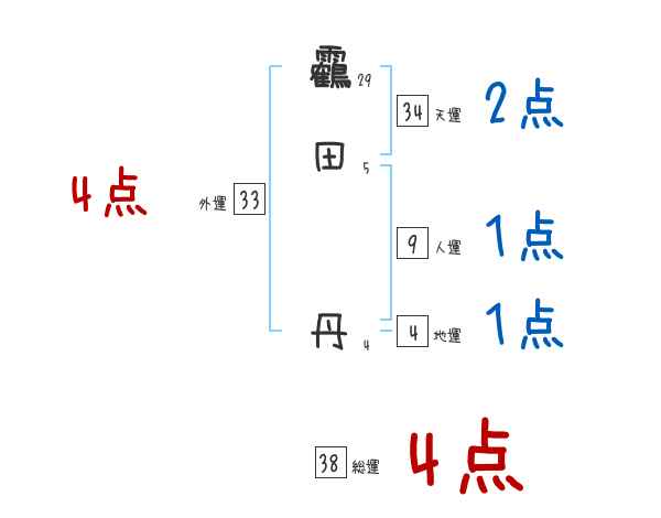 靏田丹さんの画数の鑑定結果