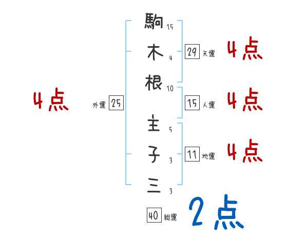 駒木根主子三さんの画数の鑑定結果
