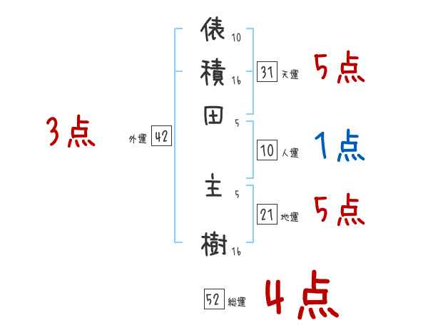 外運![]() | 俵積田主樹さんの外運は42画の3つ星!病気に注意。多芸であるが消極的でおとなしい。 生活面を象徴する運勢です。外部から受ける影響力を表し、結婚運、家庭運や職場、環境への順応性を表します。 |
