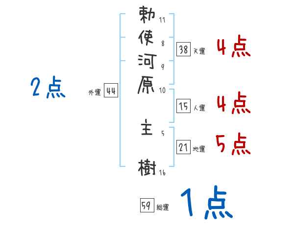 外運![]() | 勅使河原主樹さんの外運は44画の2つ星!誠実で慎重な性格。物事を考えすぎないように注意しましょう。 生活面を象徴する運勢です。外部から受ける影響力を表し、結婚運、家庭運や職場、環境への順応性を表します。 |