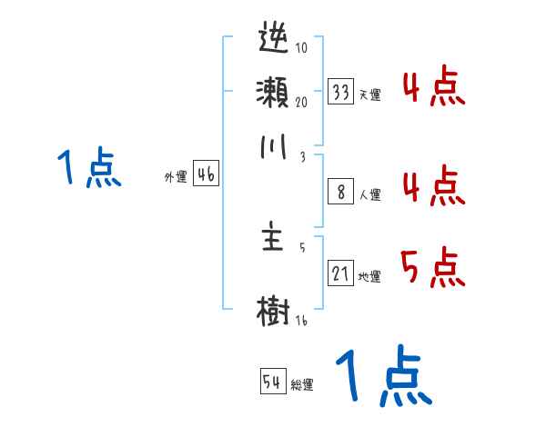 総運![]() | 逆瀬川主樹さんの総運は54画の1つ星!トラブルが多いかも。周りをよく見て協調して過ごしましょう。 あなたの人生を表す1番重要な運勢です。生涯を通じて影響する総合運となり、主に50歳以降の晩年期に影響を及ぼします。 |