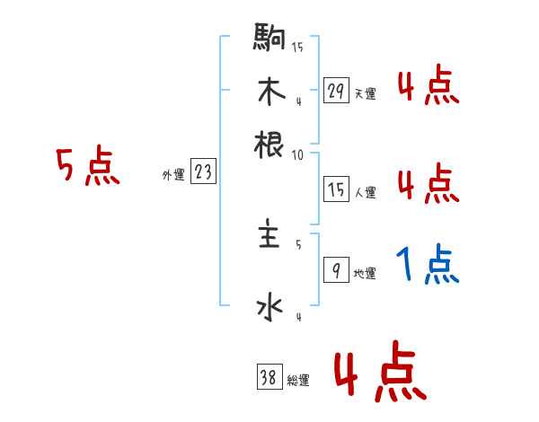 天運![]() | 駒木根主水さんの天運は29画の4つ星!完全主義で才能がある。厳格な心の持ち主。 家系が持つ宿命的な運勢を表します。祖先から受け継いだ苗字ですので自分の力が及びません。家柄を象徴します。 |