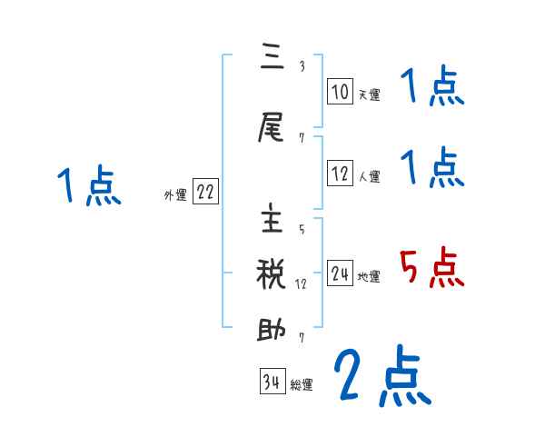 三尾主税助さんの画数の鑑定結果