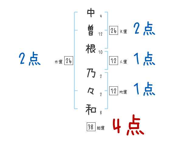 外運![]() | 中曽根乃々和さんの外運は26画の2つ星!波瀾万丈かも。信頼できる人を大事にしましょう。 生活面を象徴する運勢です。外部から受ける影響力を表し、結婚運、家庭運や職場、環境への順応性を表します。 |